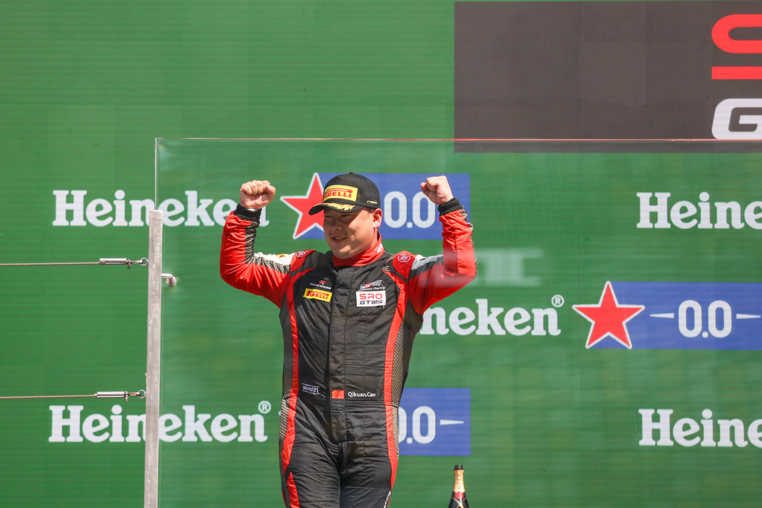 周日第二回合遭遇低温湿滑赛道,比赛在安全车带领下开启,绿旗挥动后韩坜潮连续完成关键超越,在30分钟+1圈的激战中率先冲线,拿下SRO GT CUP元年首冠。余绕乘势逆袭至全场第七,斩获生涯首枚赛事积分,成为本站最大惊喜;王浩从末位发车狂追10位,以全场第十四完赛诠释韧性;曹其宽再夺AM组季军、全场第六,两回合均登领奖台,车队首站便交出亮眼答卷。