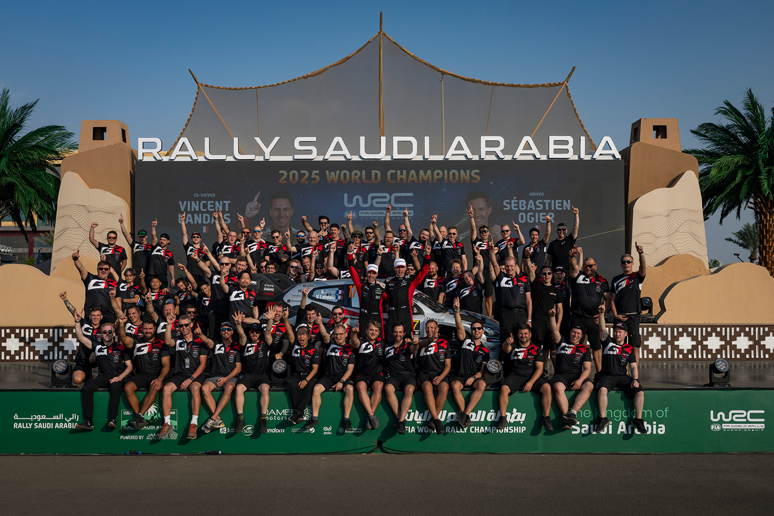 2025赛季FIA世界拉力锦标赛(WRC)沙特阿拉伯拉力赛于11月26日至11月29日展开激烈角逐。TOYOTA GAZOO Racing World Rally Team (简称“TGR-WRT”)以五台GR YARIS Rally1强势参赛,Sébastien Ogier驾驶GR YARIS Rally1 17号车夺得分站季军,也同时夺得了个人职业生涯第九个年度车手冠军殊荣。TGR-WRT连续五年夺得年度厂商冠军!