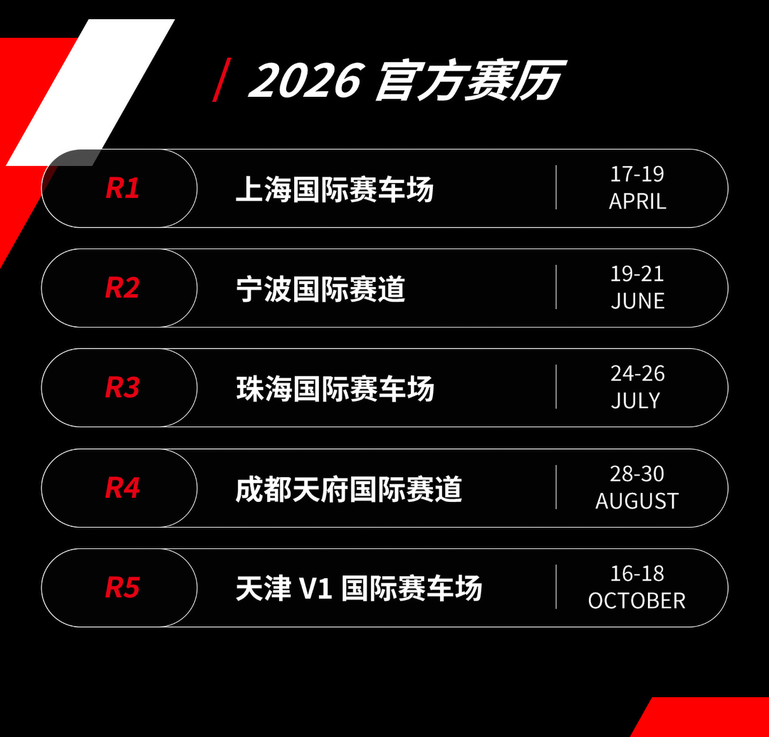 五站赛事,五座风格迥异的赛道,从沿海到内陆,从经典到新锐,2026赛季将再次献上令人难忘的热血征程。
