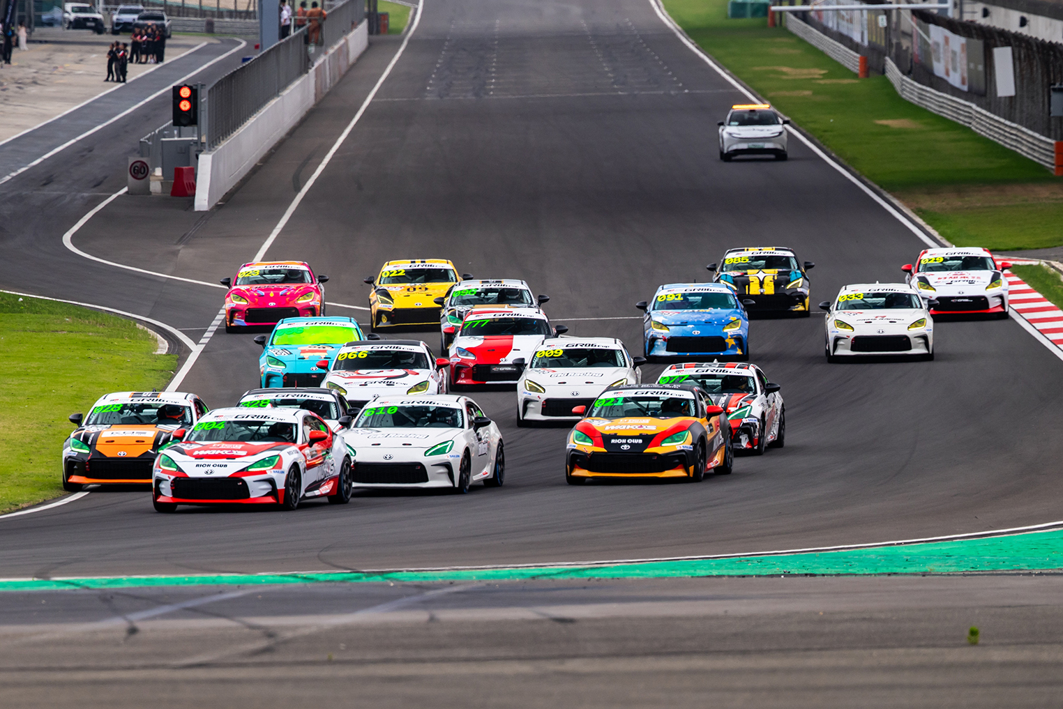 正赛采用动态发车程序,暖胎圈后,赛车在行进中全速起跑。这对车手的反应速度、起步时机把控以及赛车位置判断提出了更高要求,也为比赛增添了更多悬念与看点。